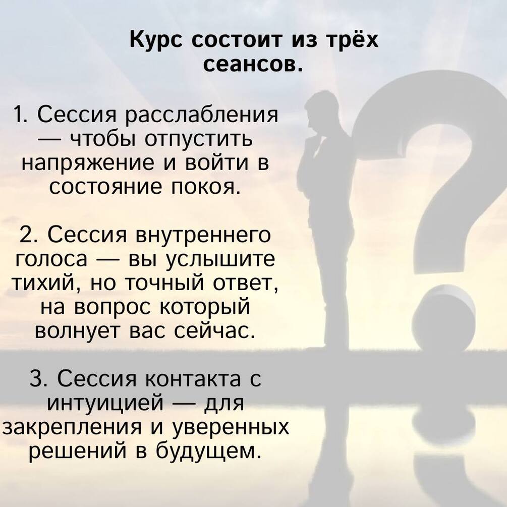 2. Сессия внутреннего голоса — вы услышите тихий, но точный ответ, который всегда был в вас на вопрос который важен именно сейчас.